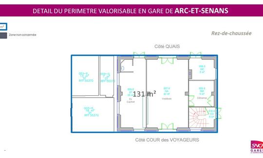 Au sein de la gare d'Arc-et-Senans, nous vous proposons à la location de plusieurs espaces d'une superficie totale de 131 m² au rez-de-chaussée répartis comme suit :